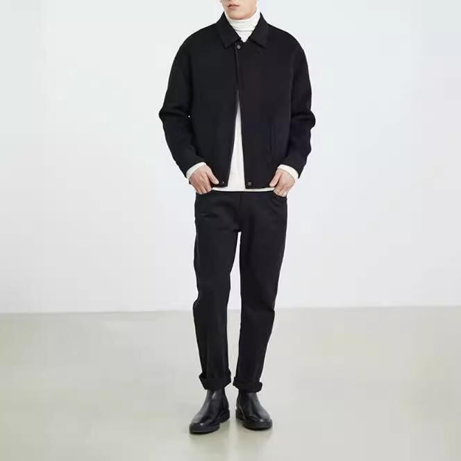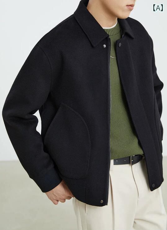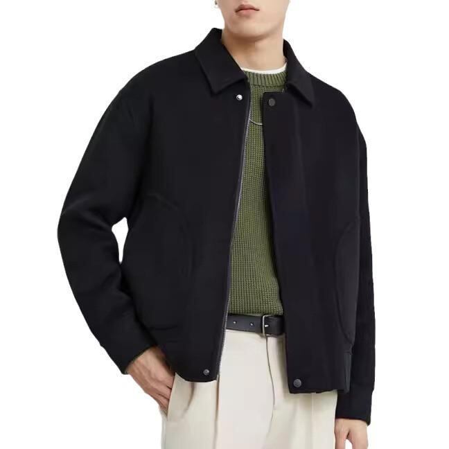 ジャケット メンズ 秋冬 ウール ダブルフェイス メルトン フライトジャケット MA-1 ショート丈 ゆったり ルーズフィット カジュアル ファッション トレンド 厚手 防風 襟付き 多機能ポケット アウター ブラック カーキ