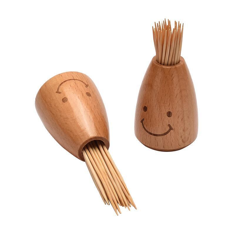 爪楊枝入れ 木製 ウッド ミニ 小型 スマイル 笑顔 かわいい ユニーク おしゃれ 家庭用 卓上 携帯用 持ち運び ナチュラル デザイン インテリア 雑貨