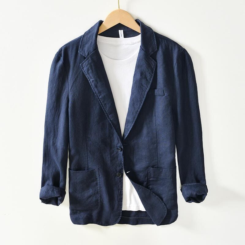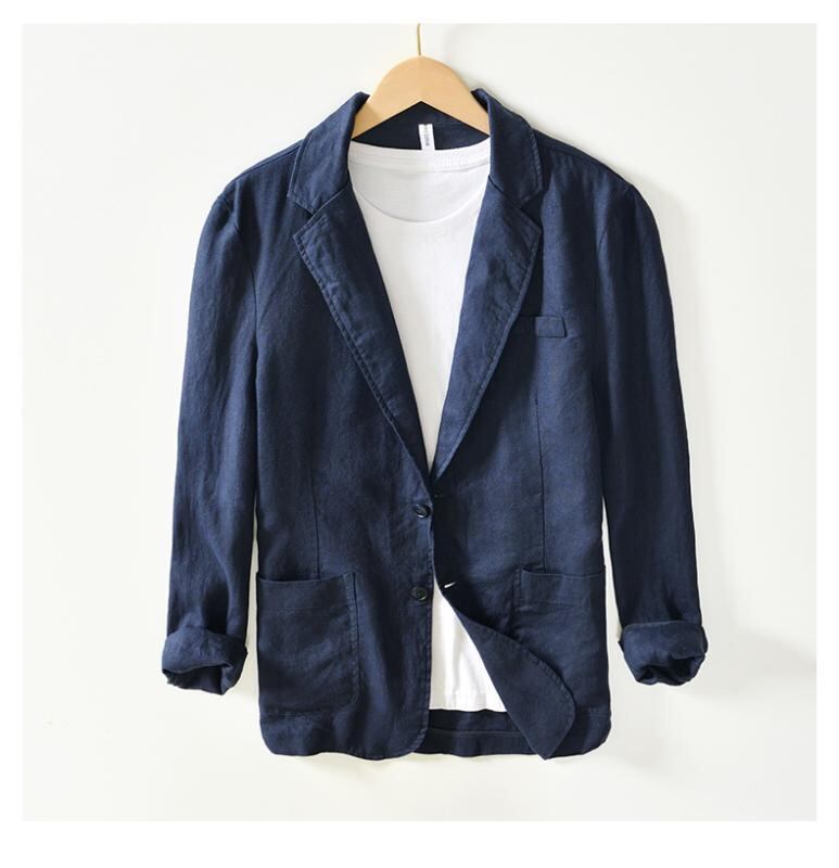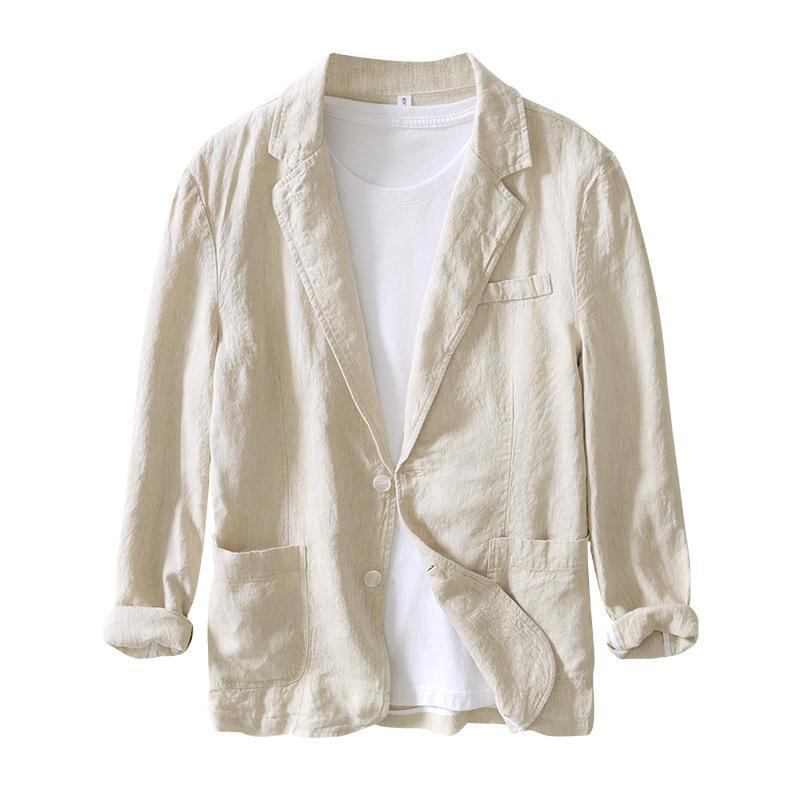 テーラードジャケット メンズ レトロ クラシック ノッチドラペル リネン 麻素材 ビジネス カジュアル ゆったり ルーズフィット 通気性 長袖 着回し ホワイト カーキ ネイビー グレー