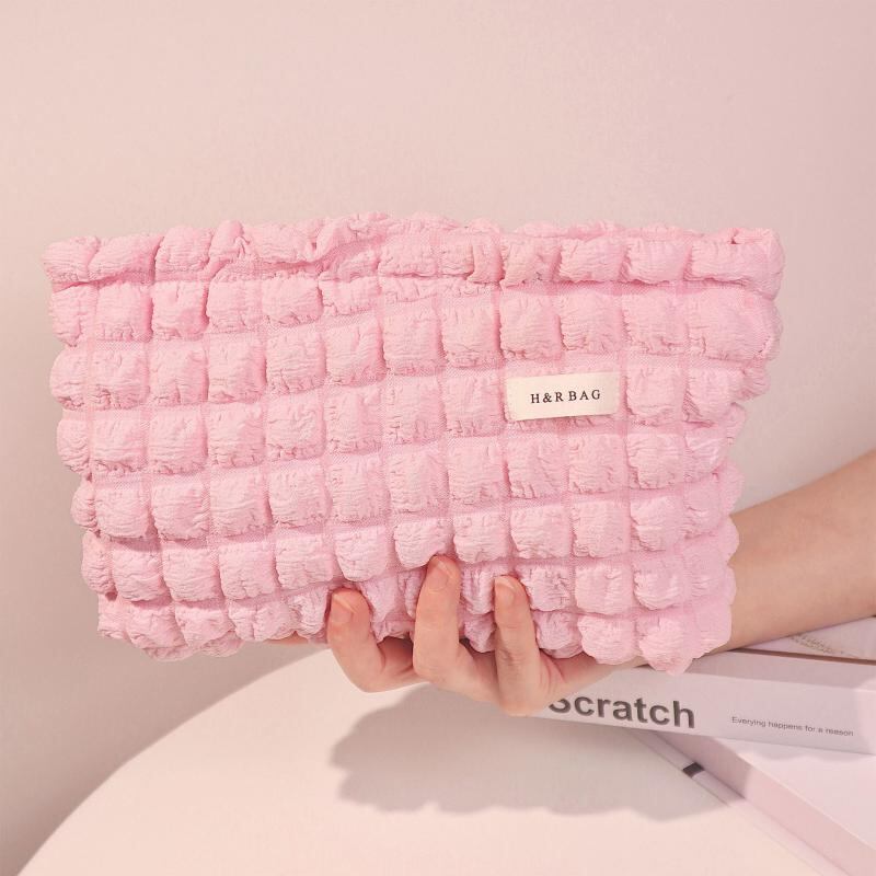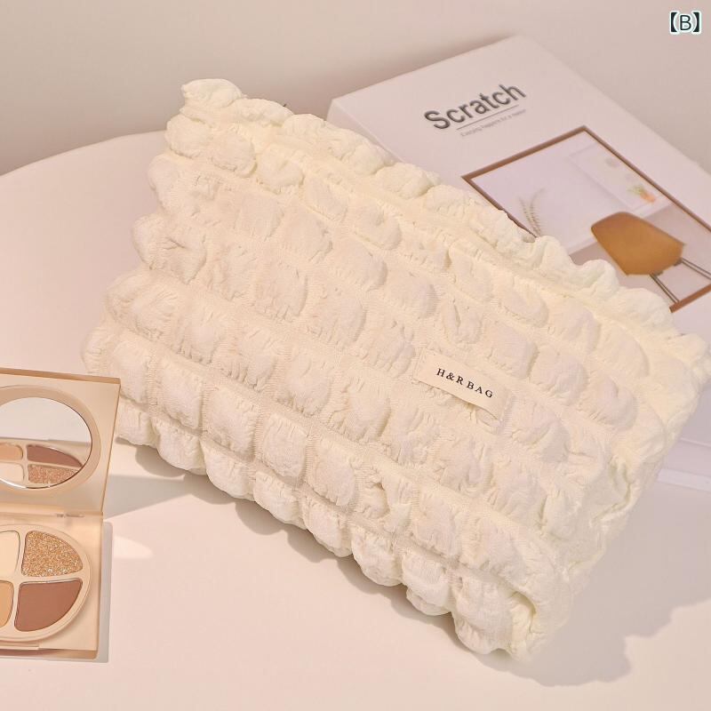 化粧ポーチ レディース 韓国風 立体 クラウド バブル柄 手持ち 携帯用 大容量 旅行 トラベル コスメ メイク スキンケア 洗面用具入れ コットンリネン フェミニン エンボス加工 バッグインバッグ