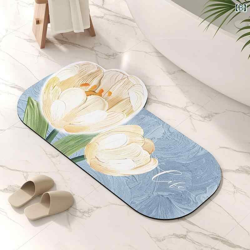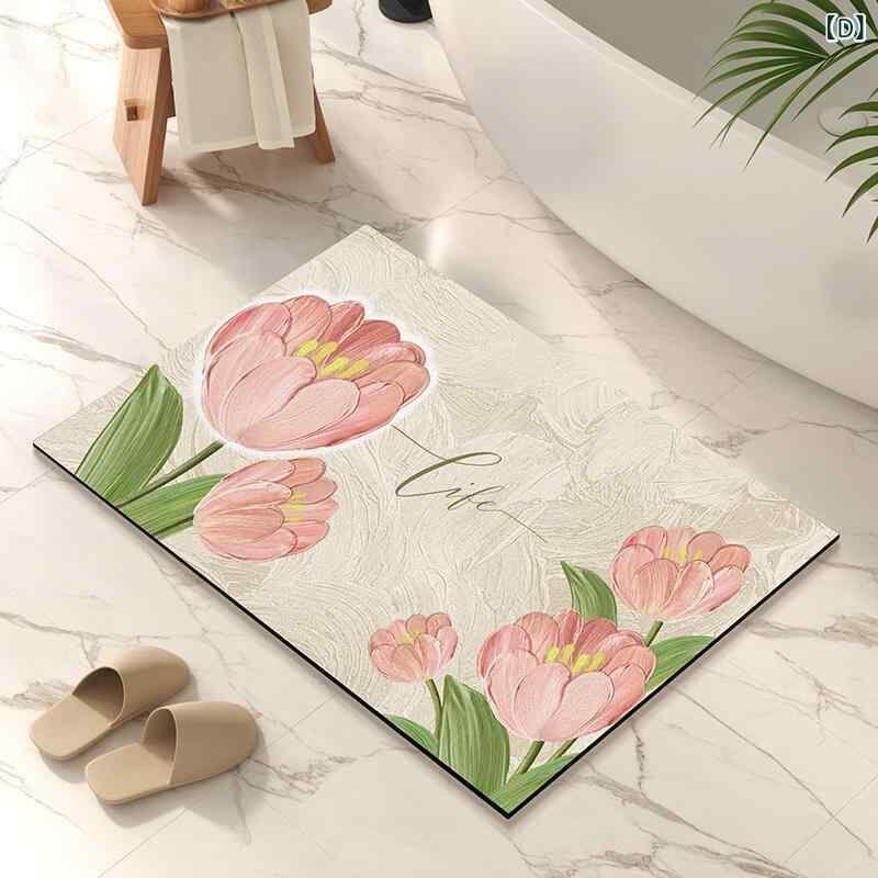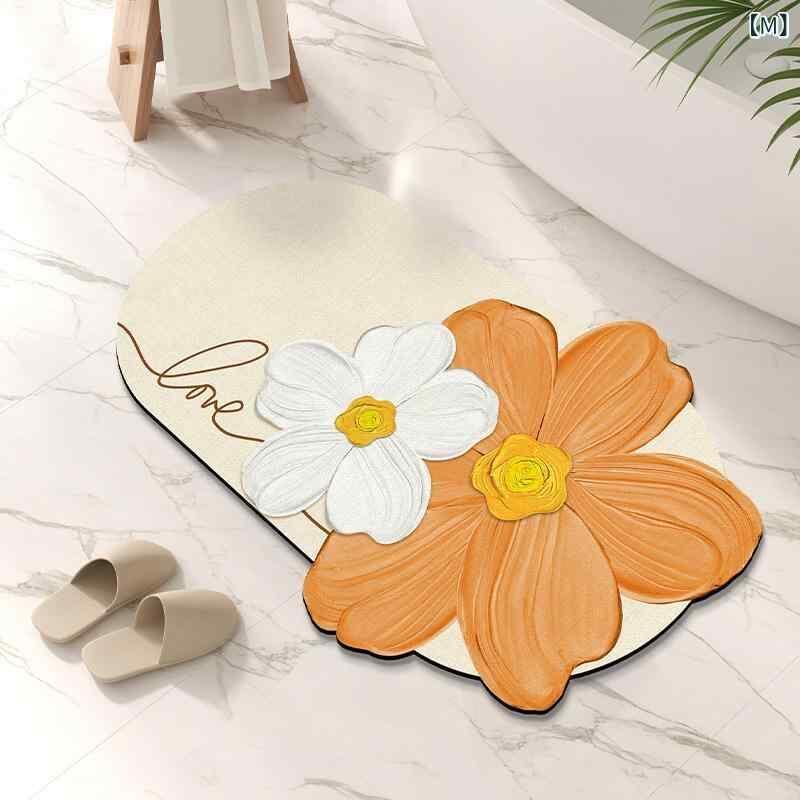 バスマット 珪藻土 吸水 速乾 抗菌 防臭 すべり止め お風呂 洗面所 トイレ 玄関 フロアマット 花柄 おしゃれ 足拭きマット リビング 室内 インテリア