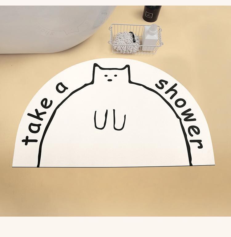 バスマット 北欧モダン 珪藻土 吸水速乾 滑り止め 猫柄 楕円形 かわいい ウォッシャブル お風呂 浴室 トイレ 洗面所 玄関 脱衣所 フロアマット リビング キッチン 室内 おしゃれ