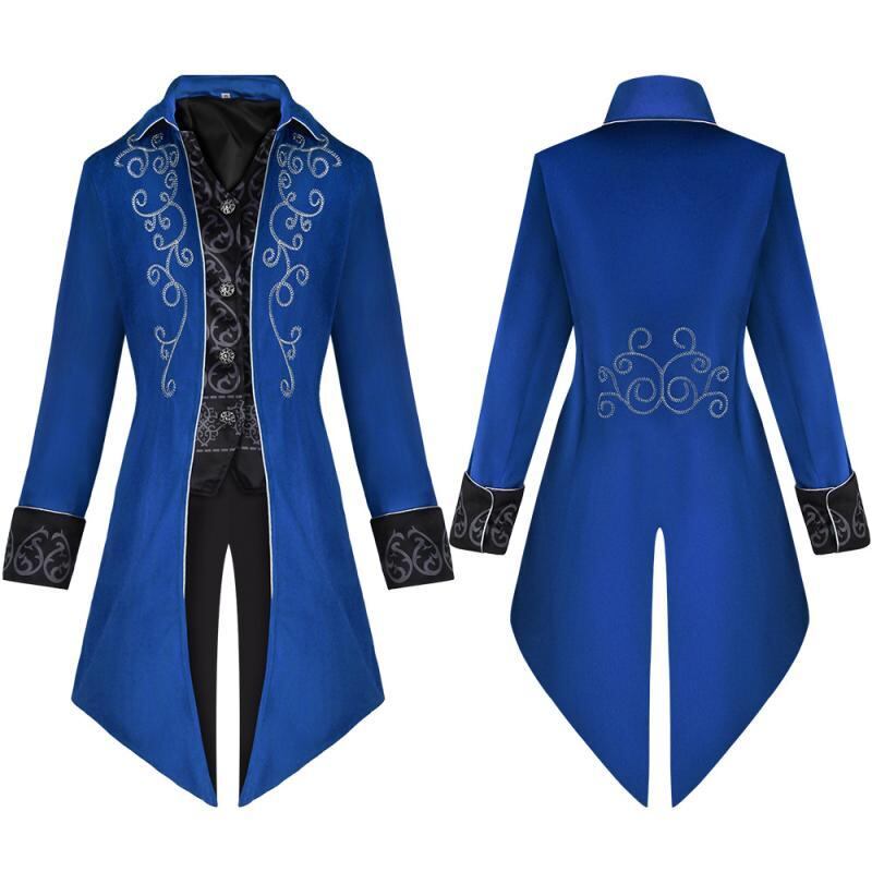 コスプレ衣装 メンズ 男性用 タキシード テールコート 中世 レトロ ヴィンテージ パンク ハロウィン 仮装 舞台 ステージ イベント ミドル丈 セミロング ポリエステル 銀縁