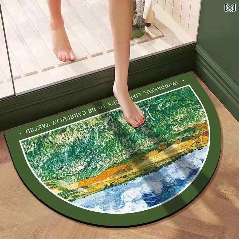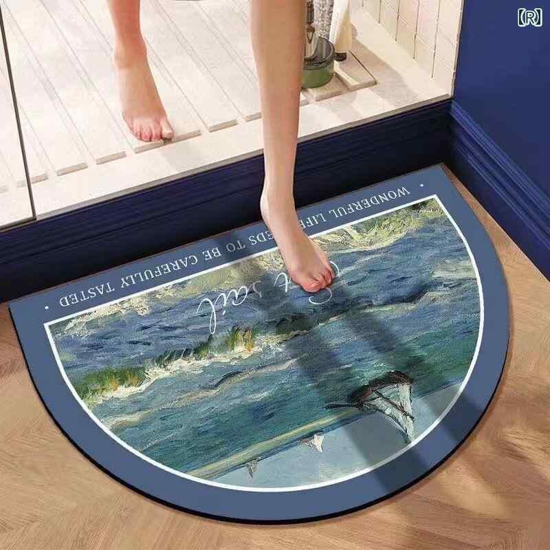 フロアマット 北欧風 珪藻土 速乾 吸水 滑り止め 楕円 半円 花柄 おしゃれ 丸洗い可能 バスマット 玄関マット バスルーム 洗面所 キッチン リビング 寝室