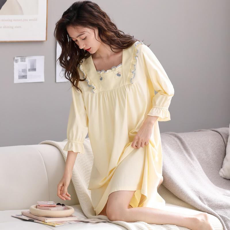 ルームワンピース レディース プリンセス風 パジャマ 綿 コットン 九分袖 春秋 薄手 かわいい 通気性 快適 ワンマイルウェア 部屋着