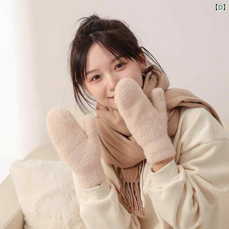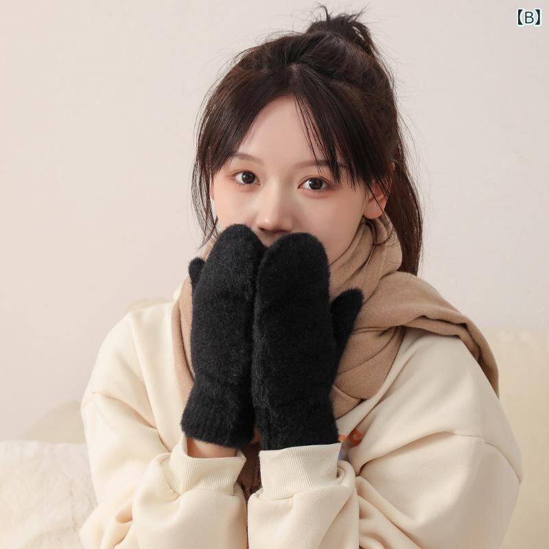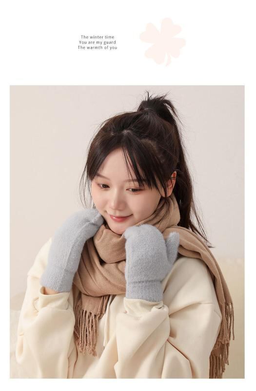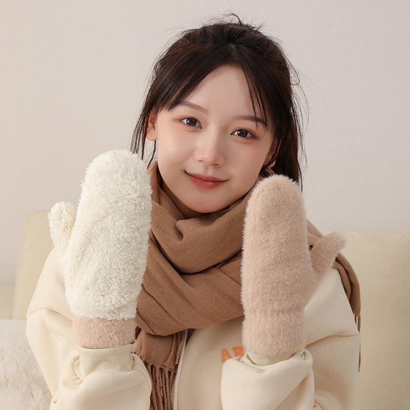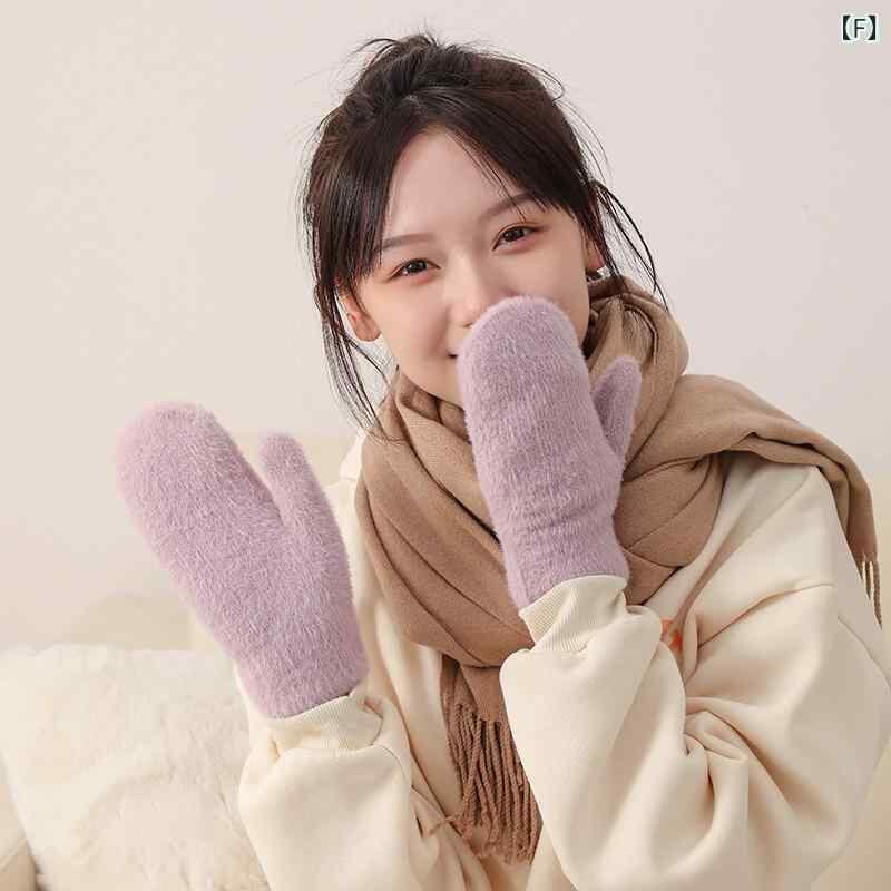 手袋 レディース 女性用 ミンクタッチ フェイクファー ニットグローブ 冬用 厚手 暖かい ふわふわ モコモコ 指あり 防寒 防風 韓国風 かわいい ガーリー 普段使い 通勤 通学 無地