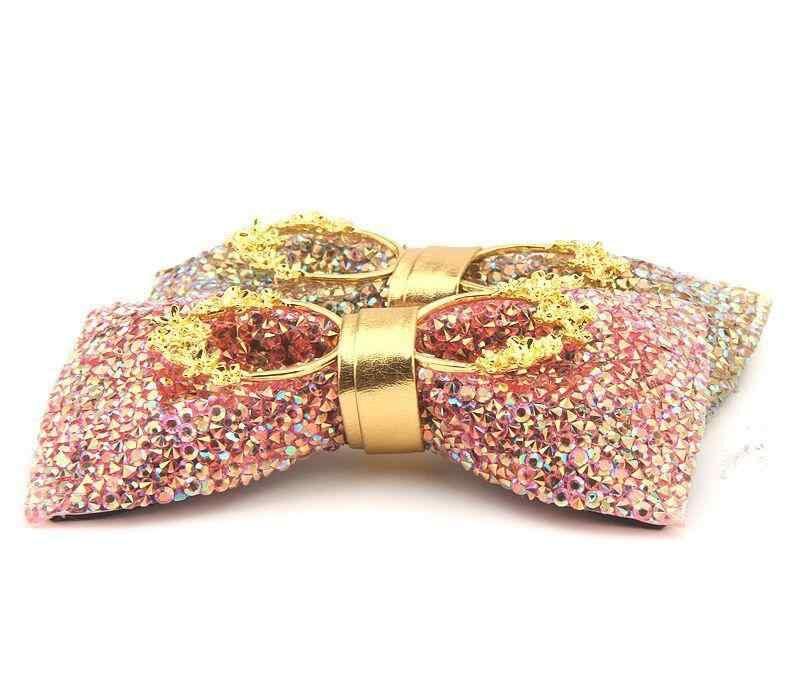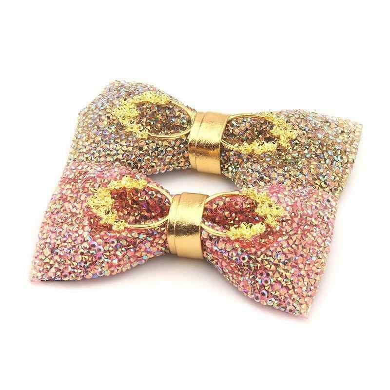 蝶ネクタイ メンズ ボウタイ カラフル ジルコニア 合金製 おしゃれ キラキラ ステージ 発表会 パーティー 結婚式 ウェディング 披露宴 スーツ タキシード フォーマル ピンク ゴールド