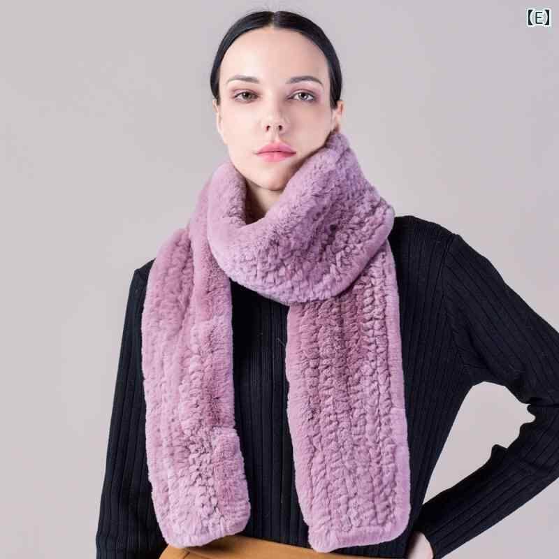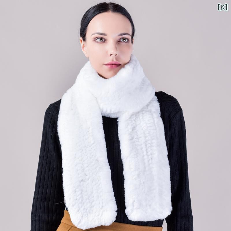 マフラー レディース レッキスラビットファー ロング丈 秋冬 防寒 無地 編み込み 両面 スヌード ネックウォーマー ストール ショール 万能 カジュアル エレガント 高級感