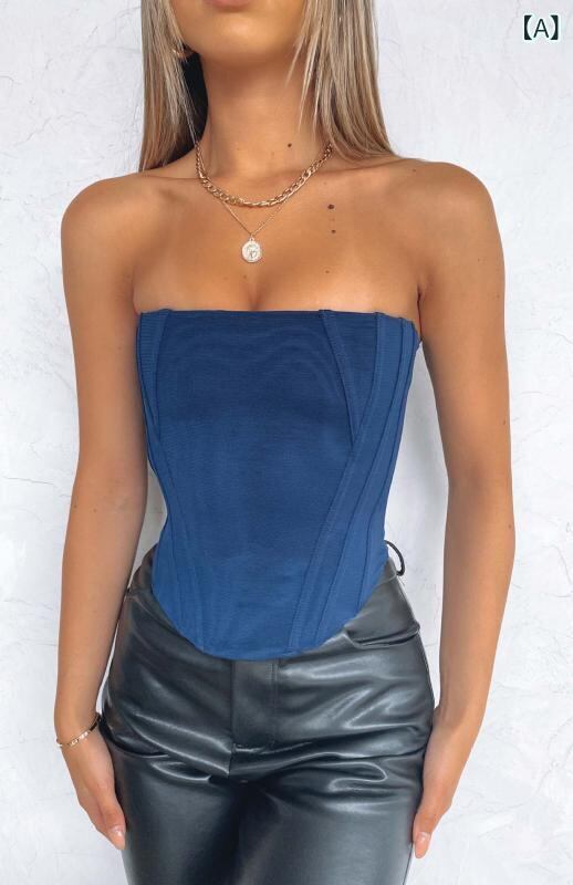 ビスチェ レディース ボーン入り ストラップレス タイトフィット ウエストシェイプ クロップド丈 セクシー 夏 無地 ジッパー ポリエステル ストレッチ トップス 黒 青 カーキ