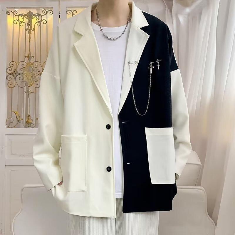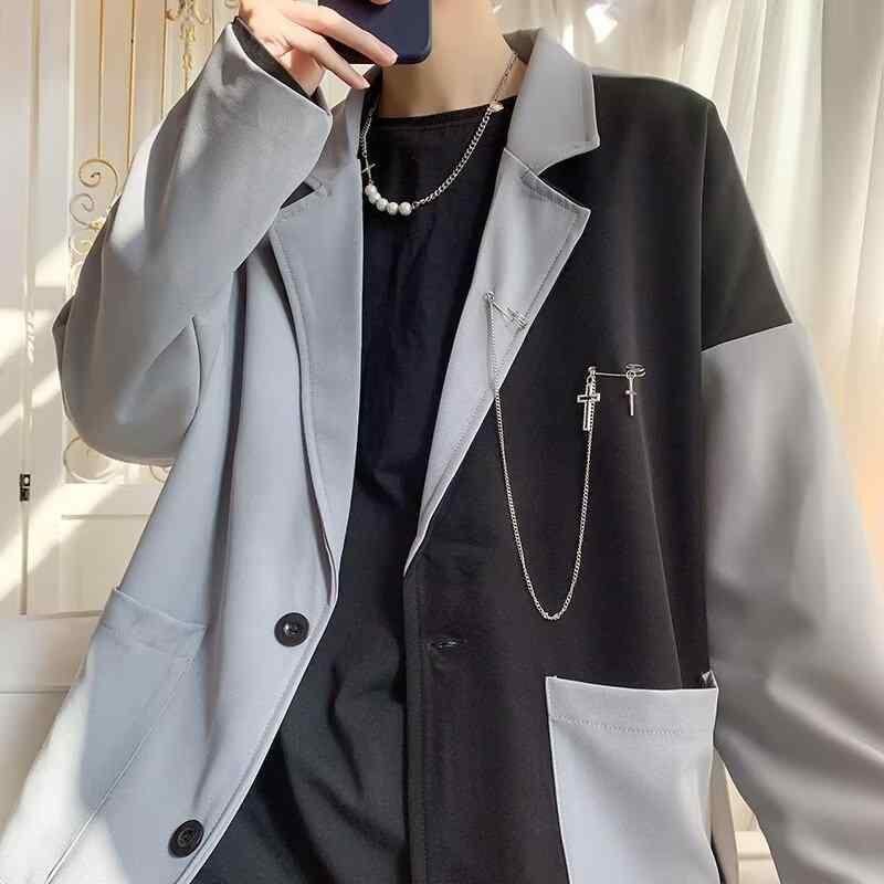ジャケット メンズ 男性用 秋 カジュアル 切り替え テーラードジャケット 高級感 トレンド スタイリッシュ ルーズフィット ビッグシルエット ポリエステル 混紡 通気性 ブレザー