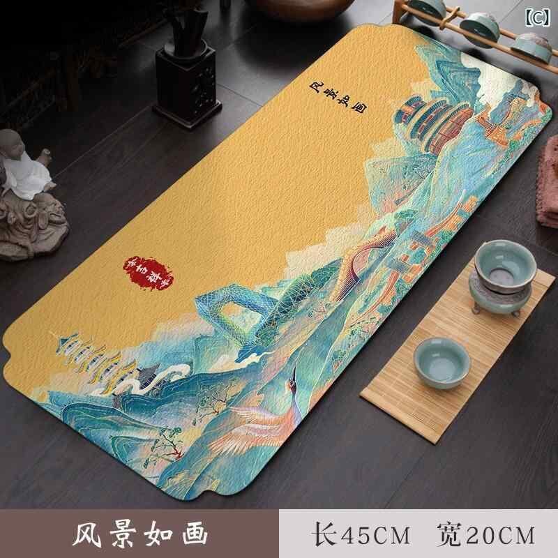 茶巾 禅風 吸水 速乾 スエード調 和モダン ポットマット 茶敷き 茶席 茶器マット テーブルセンター 山水画 花鳥画 水墨画 おしゃれ インテリア