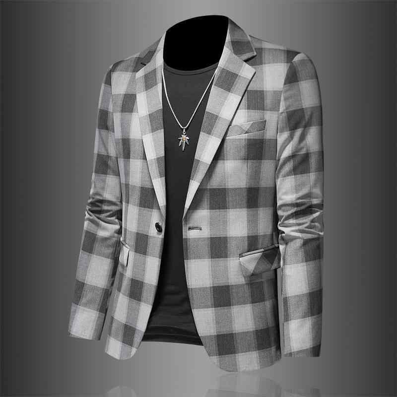 テーラードジャケット 男性用 ビジネス カジュアル 兼用 スリムフィット 細身 格子柄 チェック柄 ノッチドラペル ダブルブレスト 2つボタン スタイリッシュ 上着 アウター ブラック 黒 化繊混紡 耐久性 丈夫