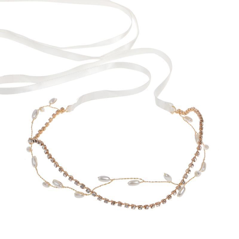 ヘッドドレス レディース 女性用 ゴールド ラインストーン パール ハンドメイド ブライダル ウェディング 結婚式 花嫁 ヘアアクセサリー 髪飾り カチューシャ