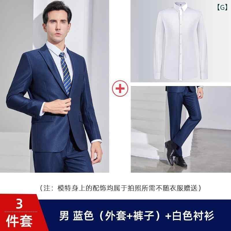 スーツ メンズ ビジネス セットアップ 高級感 テーラードジャケット スラックス オフィス 通勤 フォーマル 接客 ユニフォーム ワークウェア 男性用 ポリエステル 通気性 洗濯可 ノーアイロン 吸湿速乾 スリムフィット ホワイト ブルー ダークグレー