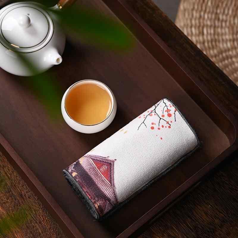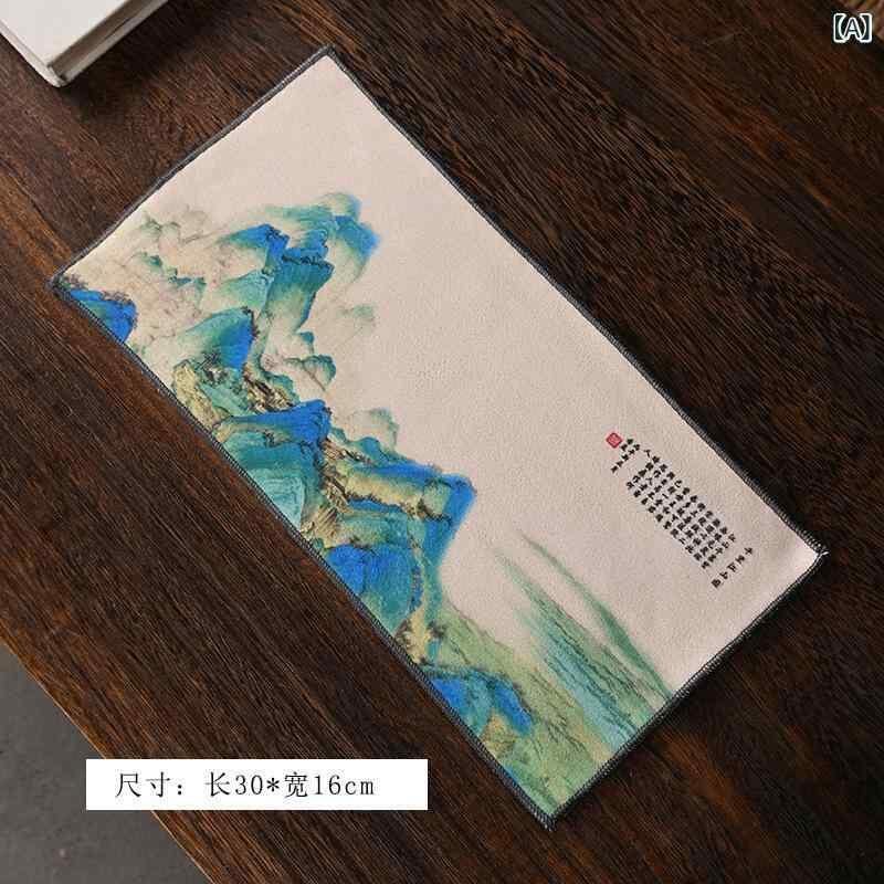 茶巾 スエード調 鹿革風 吸水性 速乾性 千里江山図 彩色 古風 中華レトロ デザイン おしゃれ 家庭用 中国茶道 功夫茶 茶器 茶具 茶布 クロス ふきん 小物