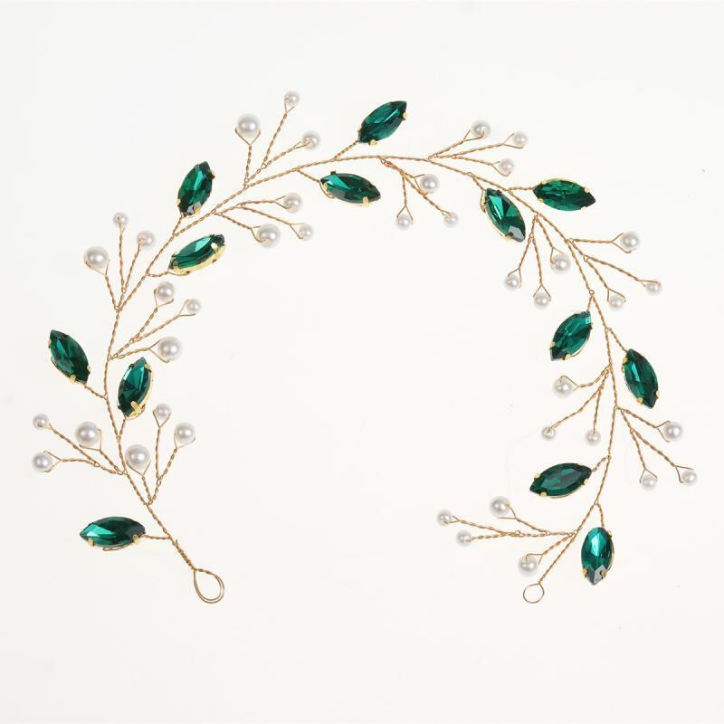 カチューシャ レディース 女性用 花嫁 ウェディング ブライダル エメラルドグリーン 深紅 レッド クリスタル ラインストーン パール ソフトチェーン フラワーモチーフ 手作り ハンドメイド ヘッドドレス ヘアアクセサリー