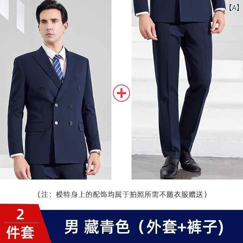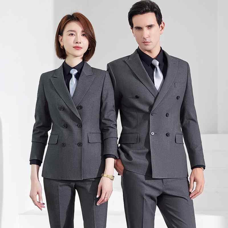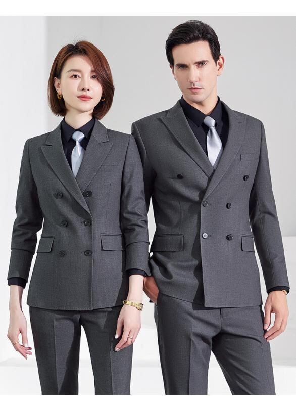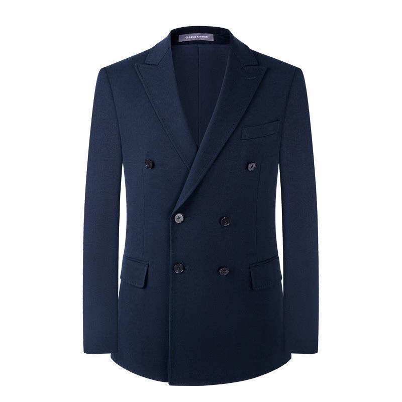 スーツジャケット ユニセックス ウール混 再生繊維ブレンド ダブルブレスト ピークドラペル センターベント ジャストフィット ビジネス 通勤 オフィス フォーマルウェア 企業制服 春秋