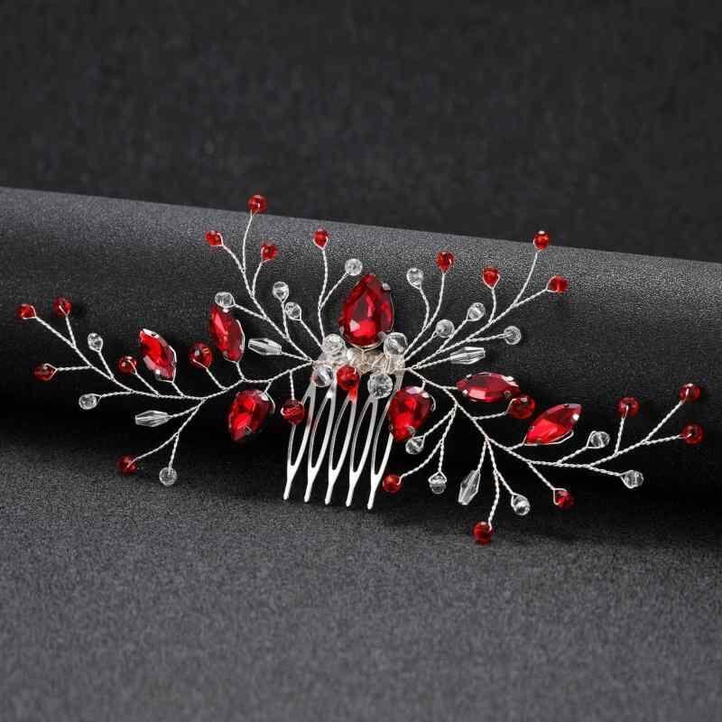 ヘッドドレス レディース 女性用 結婚式 ウェディング ブライダル 花嫁 パーティー 発表会 マーキスカット ガラス レッド 赤 真紅 ハンドメイド ヘアコーム 髪飾り かんざし