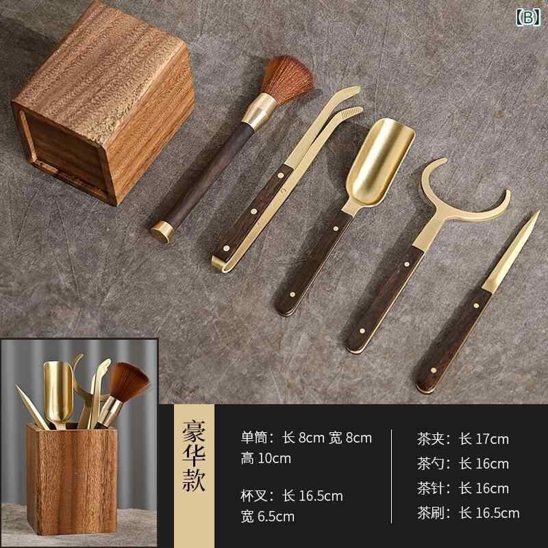 茶道具 六君子 ウォールナット材 功夫茶器 茶挟 茶匙 伝統工芸品 木製 高級感 新中式スタイル 茶器用品 6点セット 普段使い 来客用