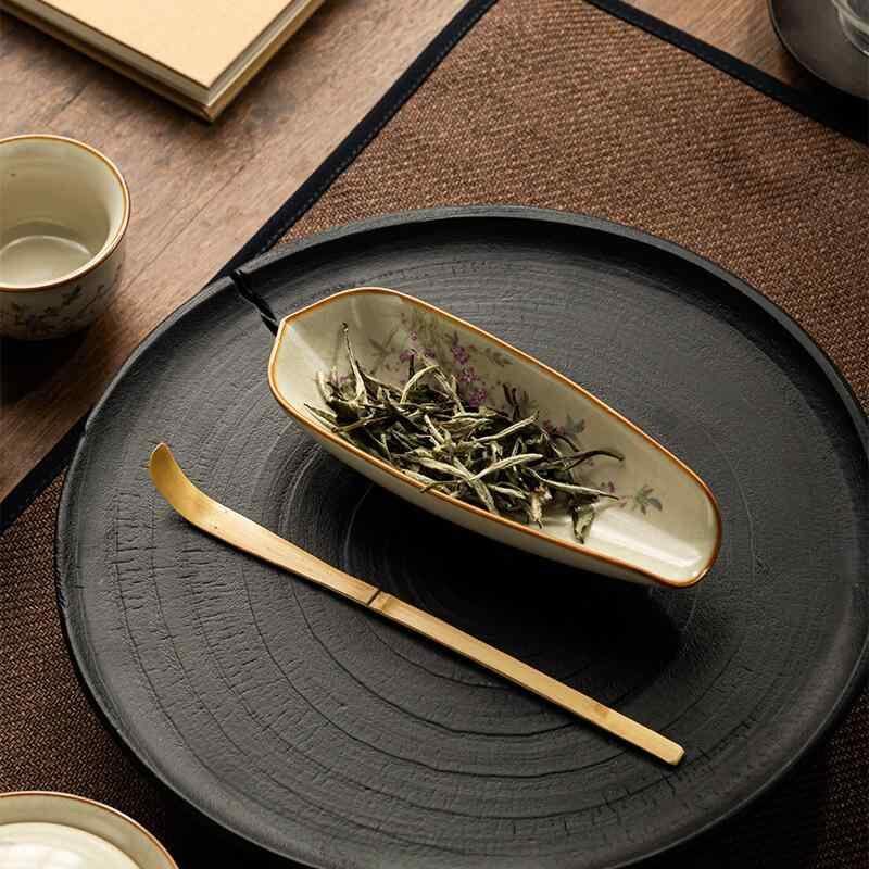茶則 銅製 ベージュ 汝窯 貫入 手作り 六君子 お茶席 鑑賞 美しい おしゃれ 経年変化 アンティーク風 高品質 工芸品 装飾