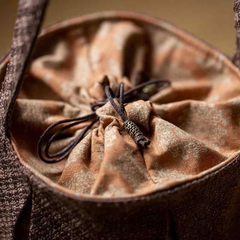 収納バッグ 綿麻製 コットンリネン アウトドア 旅行 トラベル キャンプ用 大容量 ポータブル 携帯 茶道具 茶器 茶道小物 和風 日式 小花柄 ナチュラルカラー