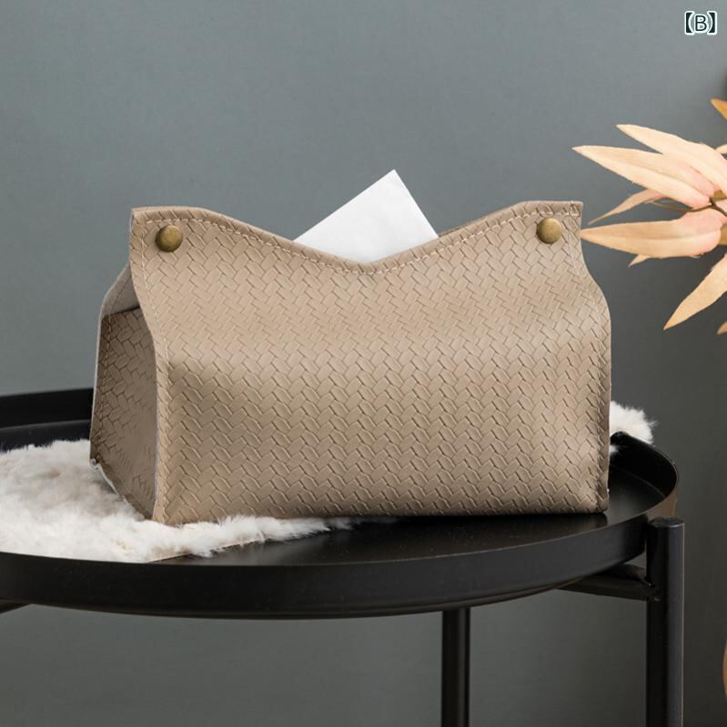 ティッシュケース 北欧 モダン スタイリッシュ PUレザー フェイクレザー 合皮 エンボス加工 麦穂柄 卓上 リビングルーム ダイニングテーブル デスク オフィス 車用 車載