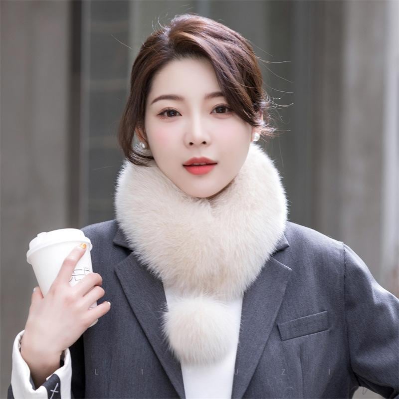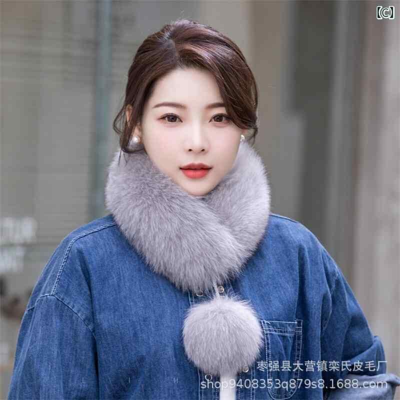 マフラー レディース フォックスファー レッキスラビットファー ホールスキン仕立て 両面仕様 裏地付き 保温 防寒 ネックウォーマー 秋冬 韓国風 襟巻き
