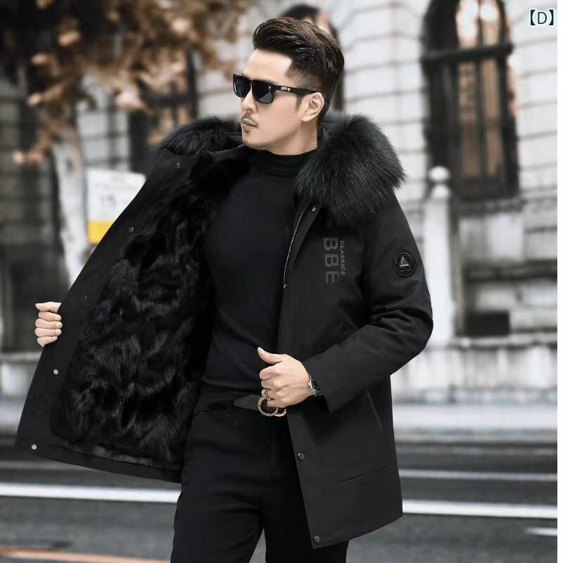 コート メンズ パーカー ミドル丈 フード付き 着脱式フォックスファーライナー 冬 防寒 保温 カジュアル 普段使い 上質アウター スマートシルエット