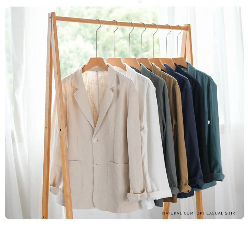 テーラードジャケット メンズ 春秋 ストライプ柄 長袖 ゆったり オーバーサイズ カジュアル ビジネス リネン麻 シンプル おしゃれ レトロ シングル2ボタン ウォッシャブル