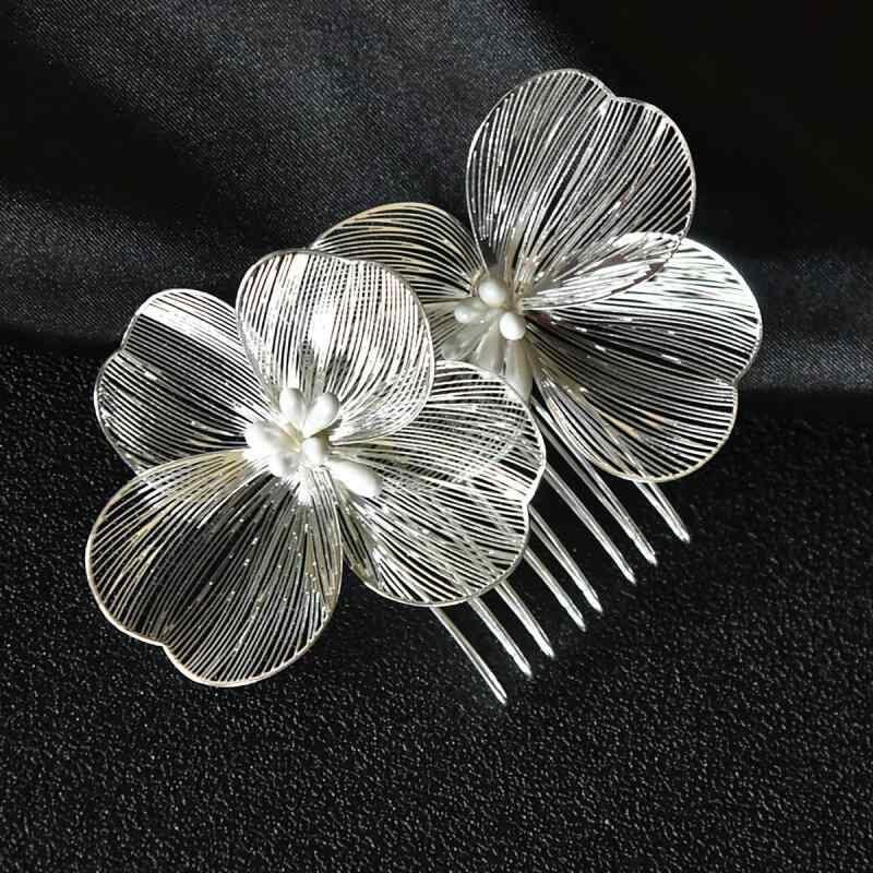 ヘアコーム レディース ブライダル 花嫁 結婚式 ヘッドドレス 髪飾り 韓国風 レトロ バロック ゴールド フラワー 花モチーフ 手作り エレガント アップヘア まとめ髪