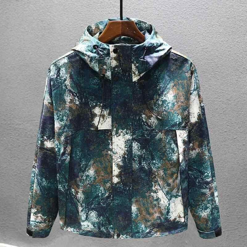 ジャケット メンズ 男性用 迷彩柄 春秋 フード付き マウンテンパーカー ウインドブレーカー アメカジ ストリート ワークスタイル ゆったり オーバーサイズ ジップアップ 耐摩耗性 ポリエステル カジュアル タウンユース アウトドア