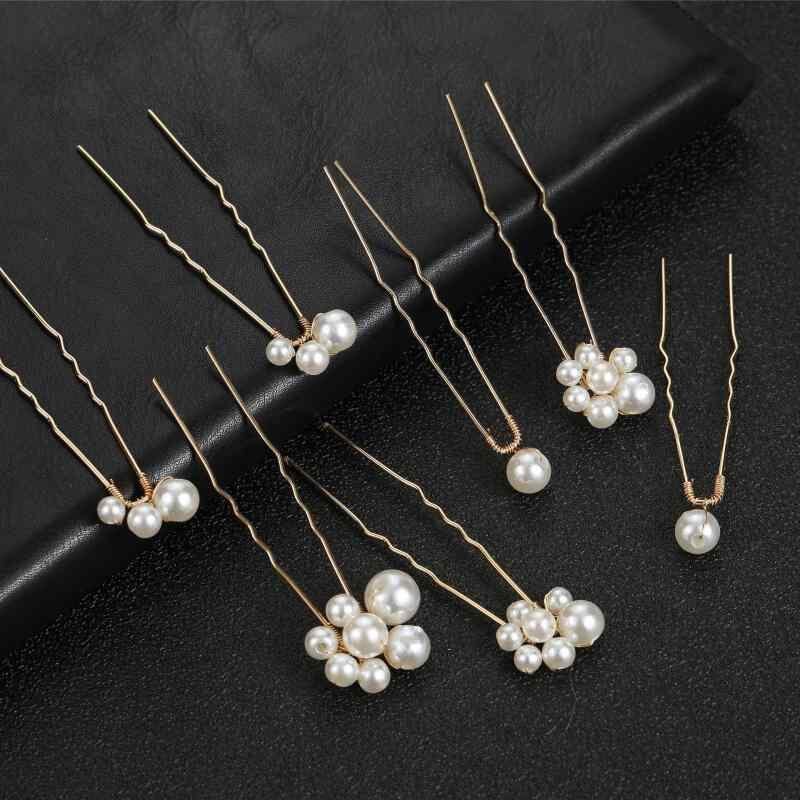 ヘアアクセサリー レディース パール Uピンかんざし 髪飾り ウェディング ブライダル 花嫁 ヘアスティック U字型 7点セット ゴールド シルバー メタル