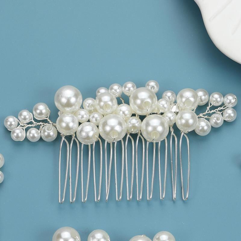 ヘアアクセサリー レディース パール ビーズ 手作り ヘアコーム かんざし 髪飾り 結婚式 ブライダル ウェディング 花嫁 フォーマル 華やか エレガント 上品 金属製 シルバー ゴールド