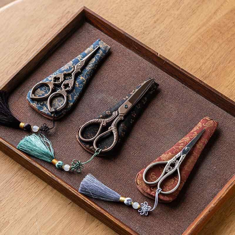 茶道ハサミ 小型 ミニ 中国風 レトロ アンティーク調 ステンレス製 家庭用 普段使い 茶葉袋 ティーバッグ 糸切り おしゃれ コンパクト 茶道具 和風 オリエンタル 吉祥柄