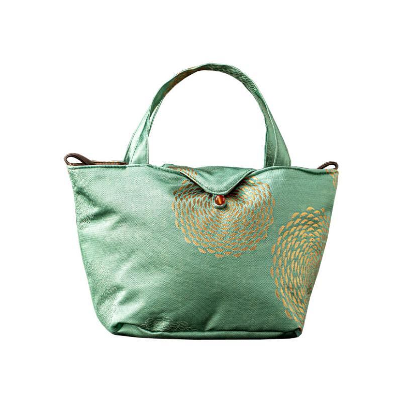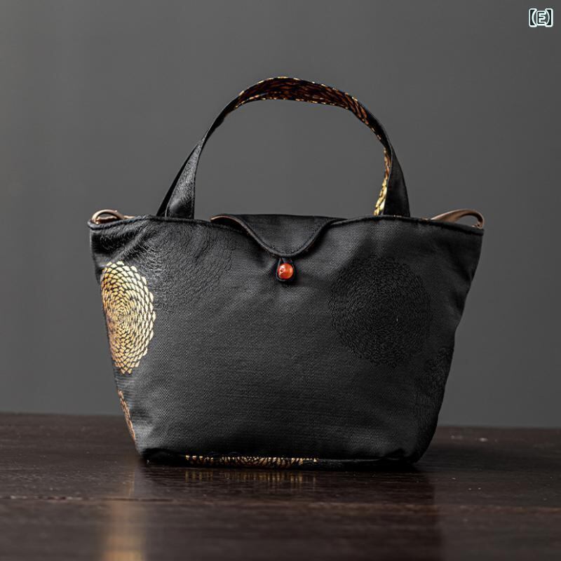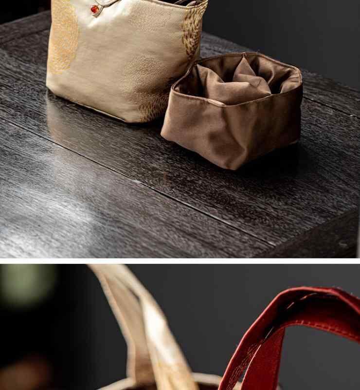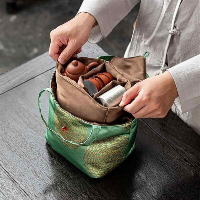茶道具収納バッグ ジャカード織り 和風 中式 ポータブル 旅行用 アウトドア 手提げ ファブリック 大容量 お茶セット 急須 湯呑み 整理ボックス 布製