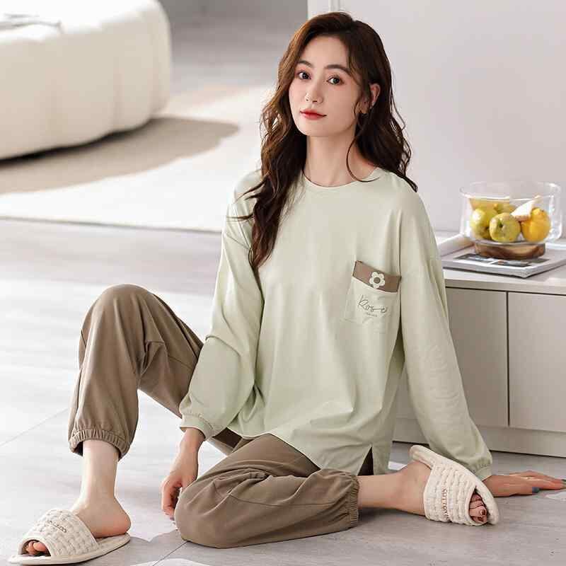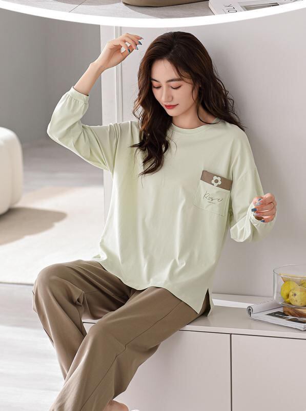 パジャマ レディース 春秋 綿 純綿 長袖 プルオーバー セットアップ ルームウェア 部屋着 ホームウェア カジュアル ワンマイルウェア 通気性 快適 ストレッチ 保温