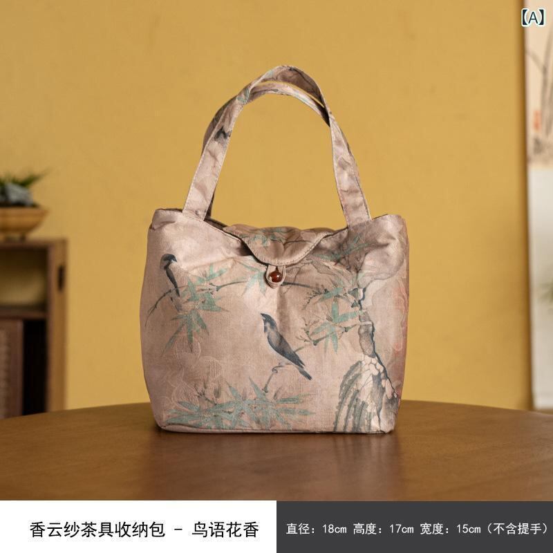 ・カラー展開: 布製茶器バッグ - 竹と鳥の図, 布製茶器バッグ - 蓮の花