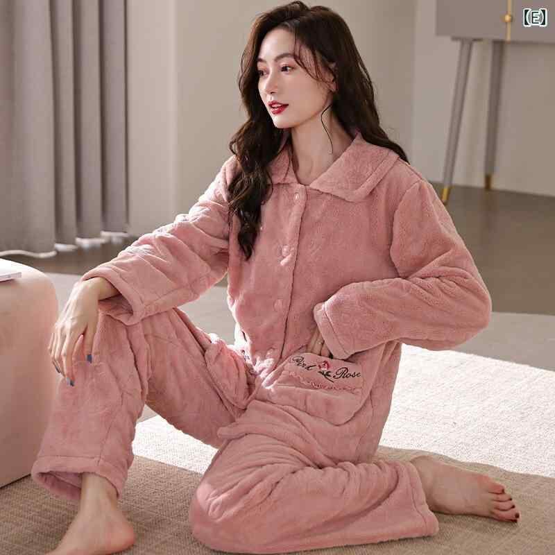パジャマ レディース ミセス ママ 秋冬 冬用 防寒 極厚 裏起毛 もこもこ フランネル あったか 保温 前開き テーラードカラー 長袖長ズボン 上下セット ルームウェア 部屋着 おうち時間