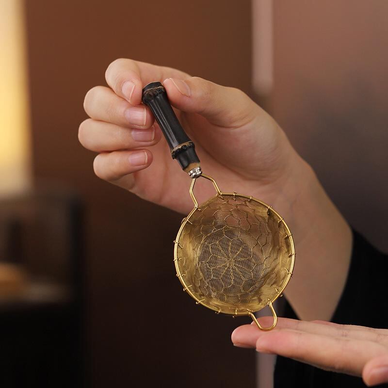茶こし 和風 304ステンレス鋼 茶漉し 茶葉ストレーナー 茶水分離器 手編み フィルター 竹節ハンドル おしゃれ 茶道具 アクセサリー ゴールド シルバー 衛生的 耐久性