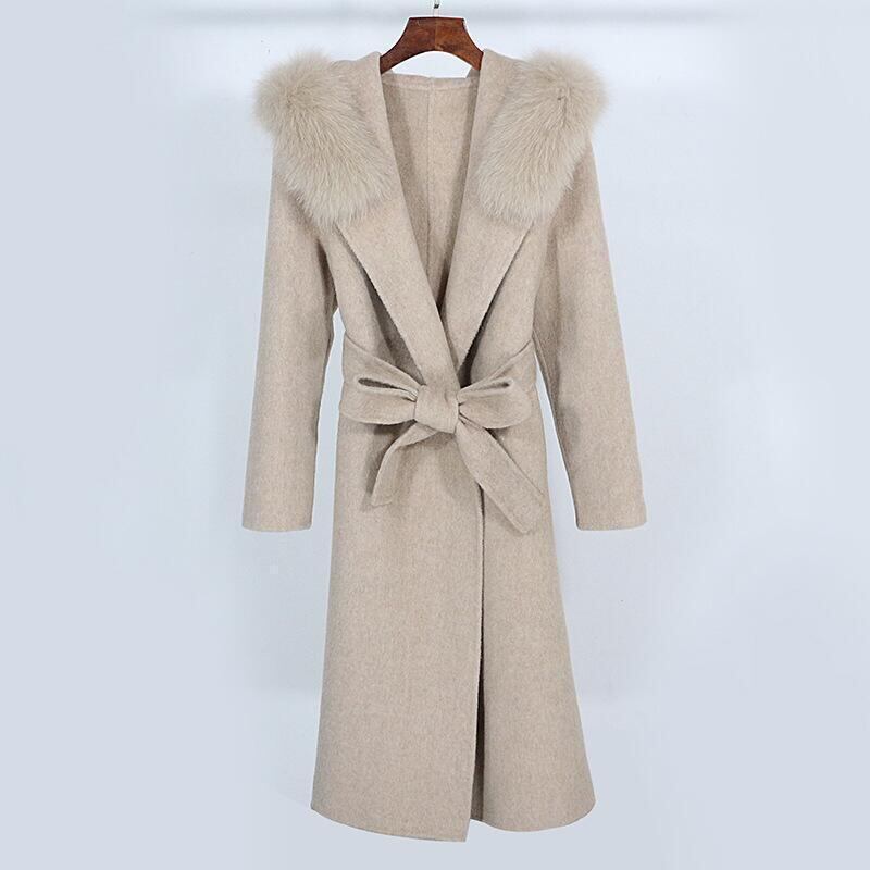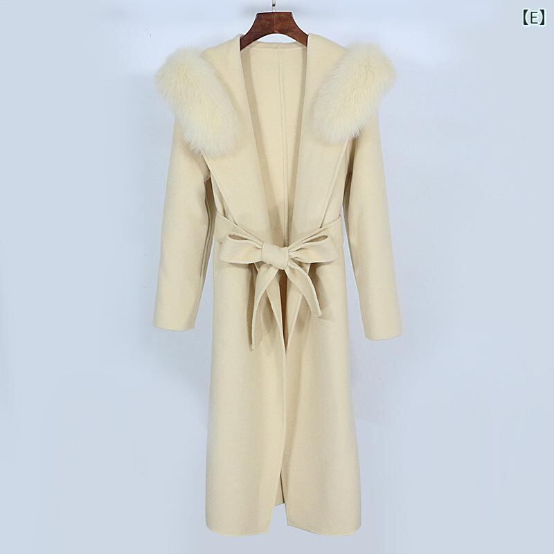 コート レディース フーデッド ダブルフェイス カシミヤ ウール フォックスファー襟 ロング丈 スリムフィット きれいめ エレガント 秋冬 アウター オフホワイト ブラック グレー