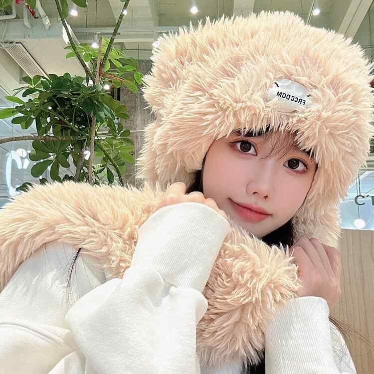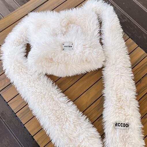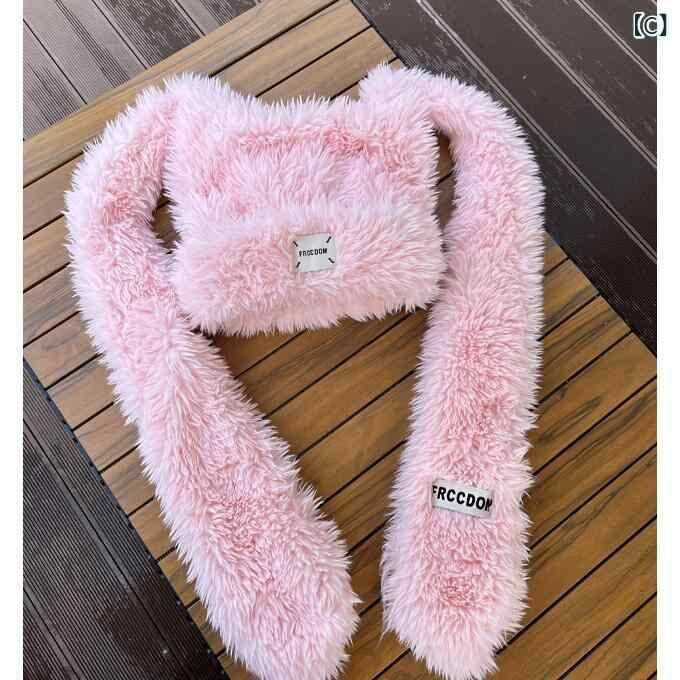帽子 レディース 日系 かわいい うさ耳 ふわふわ フェイクファー もこもこ ハット マフラー ストール 一体型 あったか 防寒 耳あて 秋冬 白 ピンク 黒 ベージュ 紫