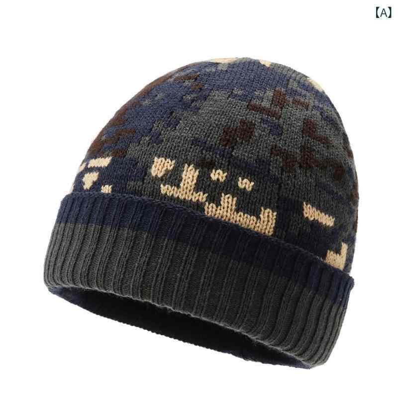 ニット帽 メンズ 男性用 秋冬 裏起毛 厚手 保温 防寒 迷彩 カモフラージュ柄 アウトドア レジャー カジュアル 暖かい ワッチキャップ ビーニー 首元あったか