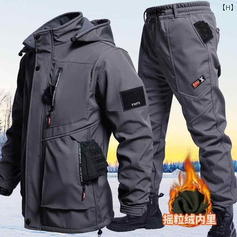 作業着 メンズ 秋冬 裏起毛 防水 防風 マウンテンパーカー 通気性 ゆったり ルーズフィット ビッグサイズ カジュアル 登山 トレッキング ワークウェア セットアップ