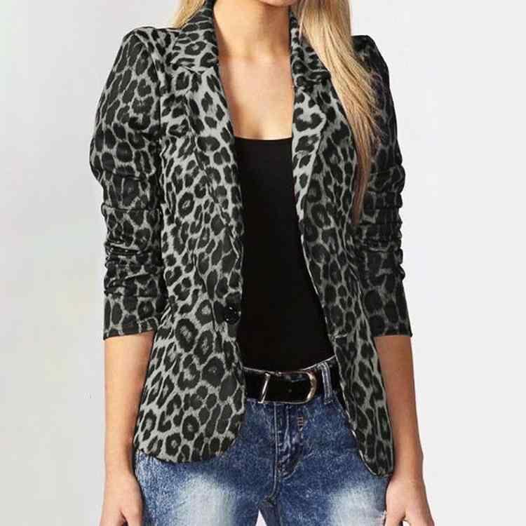 テーラードジャケット レディース ヒョウ柄 レオパード柄 プリント エレガント 上品 通勤 オフィス ビジネス 薄手 スリムフィット 長袖 テーラードカラー 1つボタン ポリエステル スパンデックス 春秋