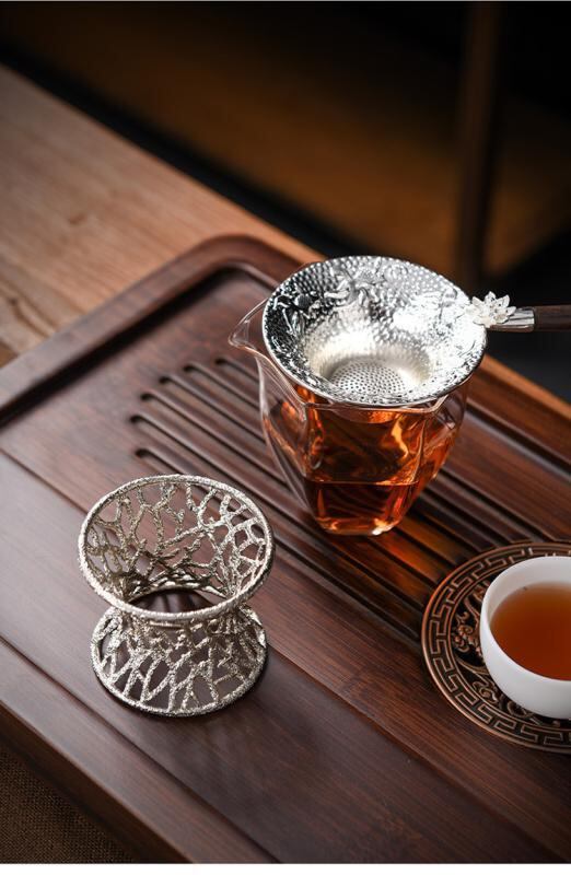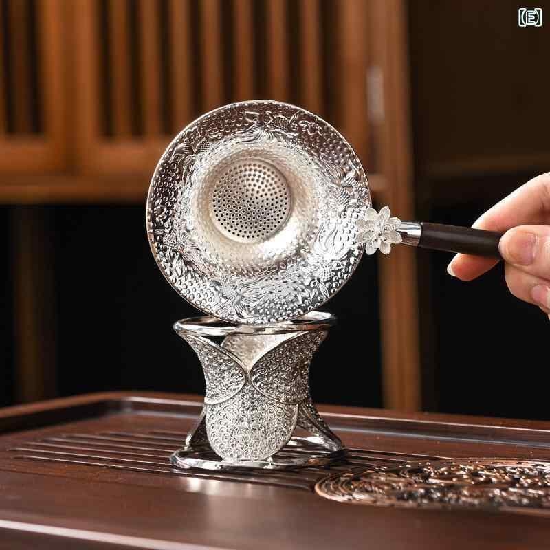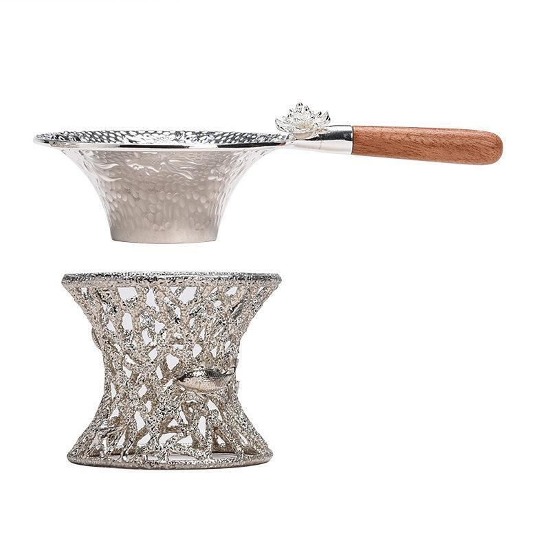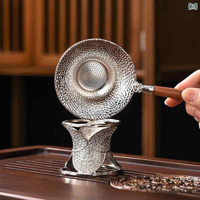 茶こし 茶漉し器 フィルター ストレーナー 合金製 木製ハンドル シルバー ゴールド 茶葉受け 茶道具 アクセサリー モダンアジアン 和風