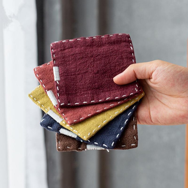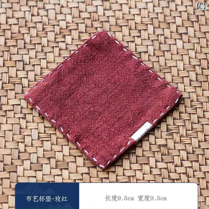 コースター 和モダン 禅風 綿麻 ラミー 手刺繍 スクエア型 断熱 茶道 茶敷 来客用 おしゃれ インテリア 上質 テーブルウェア