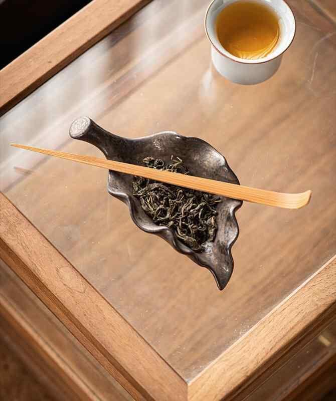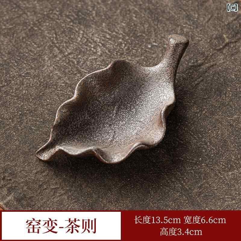 茶則 茶葉ヘラ 素焼き陶器製 陶器 ユニークデザイン 中式スタイル 葉柄 黒陶 金彩 窯変焼き 茶道具 家庭用 功夫茶器