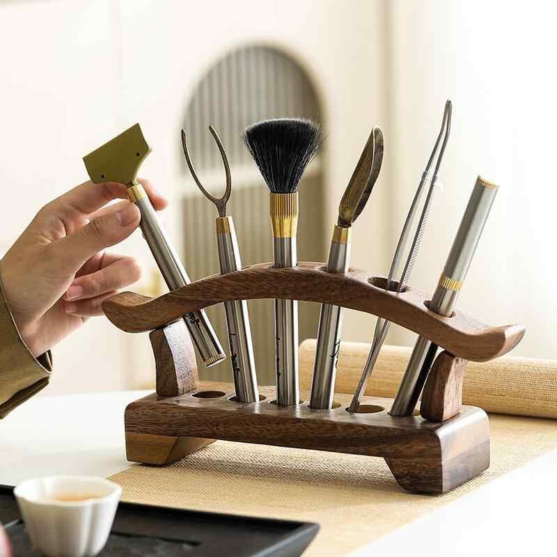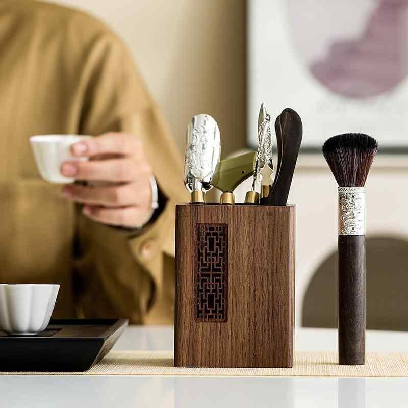 ・カラー展開: 窗花六君子+不锈钢配件、窗花六君子+胡桃木配件、窗花六君子+黒檀木配件、兵器架+不锈钢配件、兵器架+胡桃木配件、兵器架+黒檀木配件、胡桃木茶桶+黒檀木配件、胡桃木茶桶+胡桃木配件、胡桃木茶桶+不锈钢配件
