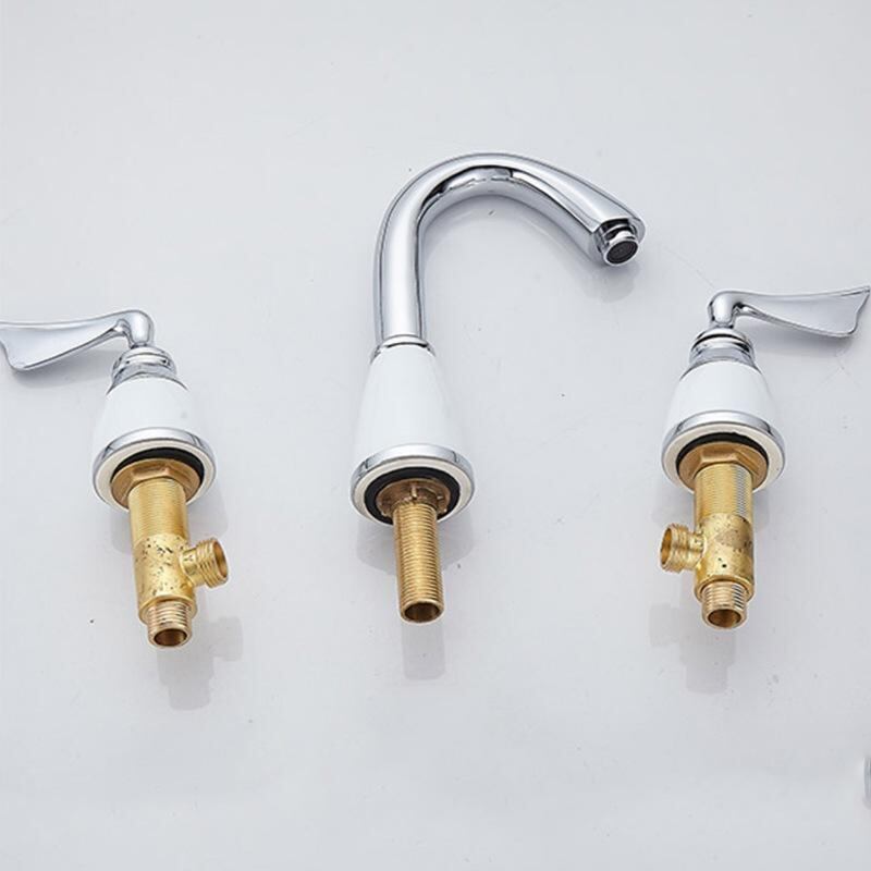 バス水栓 銅製 欧風 アンティーク調 金メッキ クロムメッキ 分離型 自立式 3ホール 混合水栓 3点セット 高級感 セラミックバルブ