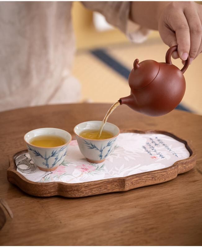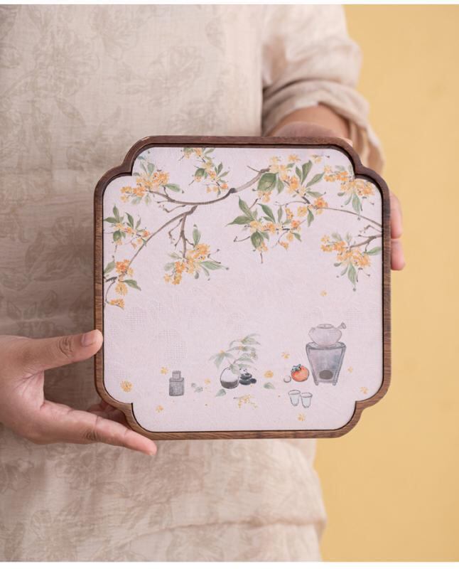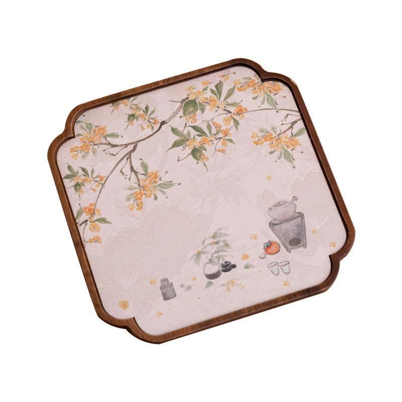 茶盤 南米ウォールナット材 クルミ材 壺承 ティーポット置き 乾式茶台 ドライティーテーブル 茶席 茶道用 茶器収納 お茶道具 トレイ レトロ アンティーク調 新中式 高級感